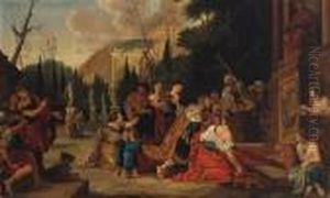 A King With His Courtiers Worshipping Before A Statue