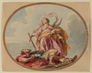 Constantine receives the standard with the monogram of Christ as the imperial sign (The Labarum)