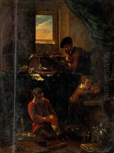 A Muzhik Botching the Bast Shoes, an Old Woman Spinning Thread