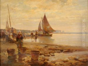 Arcadian landscape with figures on a path in the foreground, and beside a lake