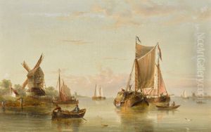 Landscape with a cottage by a river and a woman scouring a pot, a gentleman on horseback on a path