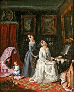 A portrait of the von Cramm family with the family home, Schloss Oelber, in the distance.